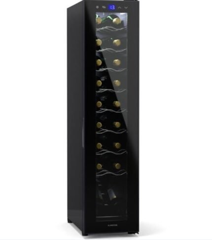 La cave à vin Klarstein Shiraz 12 Slim Uno est conçue pour les amateurs de vin, garantissant une conservation optimale des bouteilles à la température idéale de dégustation. Avec sa porte vitrée panoramique et son éclairage intérieur LED blanc, elle permet de présenter vos réserves de vin de manière élégante. Son panneau de commande tactile intuitif facilite les réglages, permettant un refroidissement précis entre 5 et 18 °C.Spécifications techniques