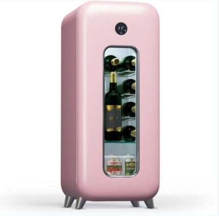 Klarstein Cave a Vin Caves à Vin de Conservation Porte en Verre Cave a Vins à Zone Unique Bar Int/Ext Frigo Vin Armoire a Vin Cave a Vin de Vieillissement Cave à Vin de 15 Bouteilles Pink