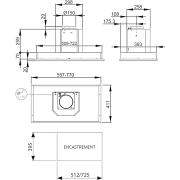 - Débit d'air maxi : 554 - idéal pour une cuisine de 25m².