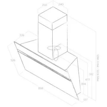 - Débit d'air maxi : 470 - idéal pour une cuisine de 20m².
