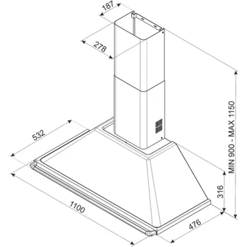 • Largeur : 110 cm, pour une zone de cuisson allant jusqu’à 110 cm de largueur.