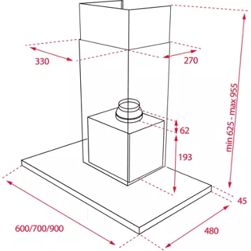 • Largeur : 90 cm, pour une zone de cuisson allant jusqu’à 90 cm de largueur.
