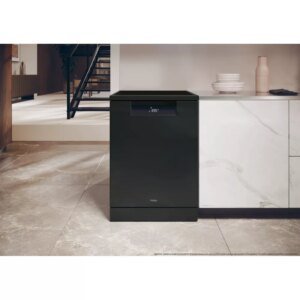 Avec une capacité de 14 couverts et une classe énergétique A, ce modèle noir élégant est conçu pour une efficacité maximale, consommant seulement 9,5 litres d’eau par cycle. Le niveau sonore réduit à 44 dB(A) assure une ambiance tranquille dans votre cuisine. La connectivité Wi-Fi et Bluetooth via l’application HON enrichit l’expérience utilisateur en proposant des programmes supplémentaires, des notifications d’entretien et des conseils pour la vaisselle. Le programmateur Haier UI, le départ différé de 1 à 23 heures et les 10 programmes disponibles, dont Eco 45°C et Intensif 75°C, offrent une flexibilité et une personnalisation accrues pour répondre à tous vos besoins de lavage.