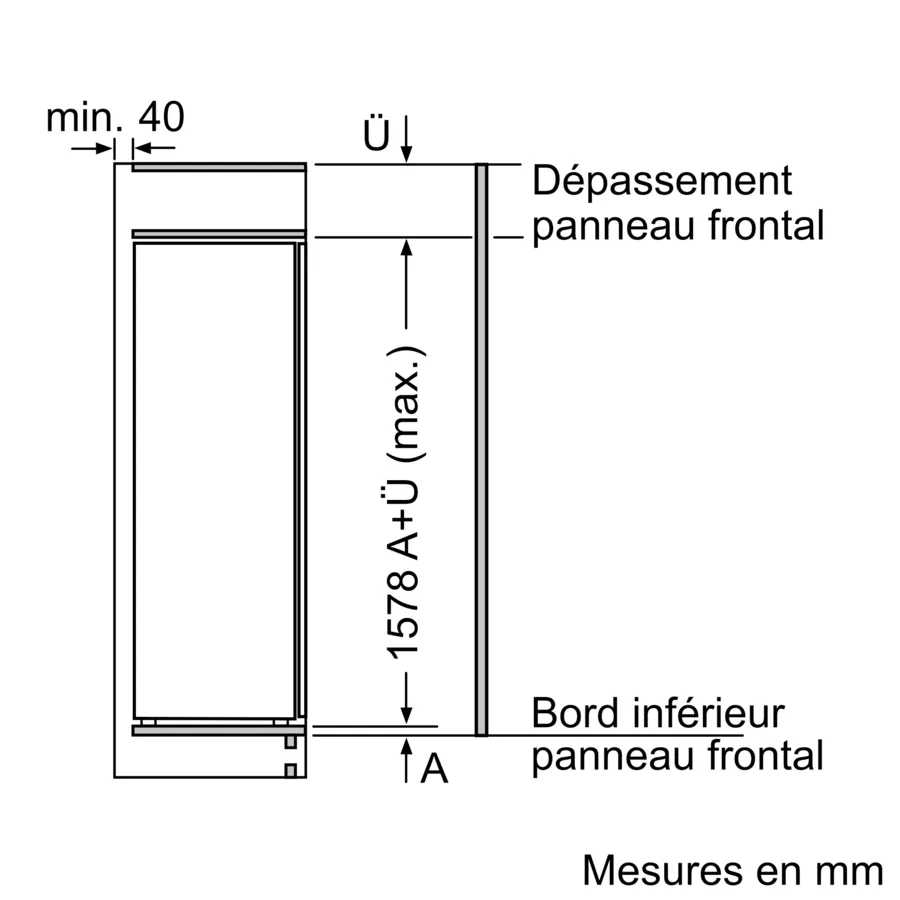 Série 4 Réfrigérateur intégrable avec compartiment congélation 122.1 x 54.1 cm charnières pantographes